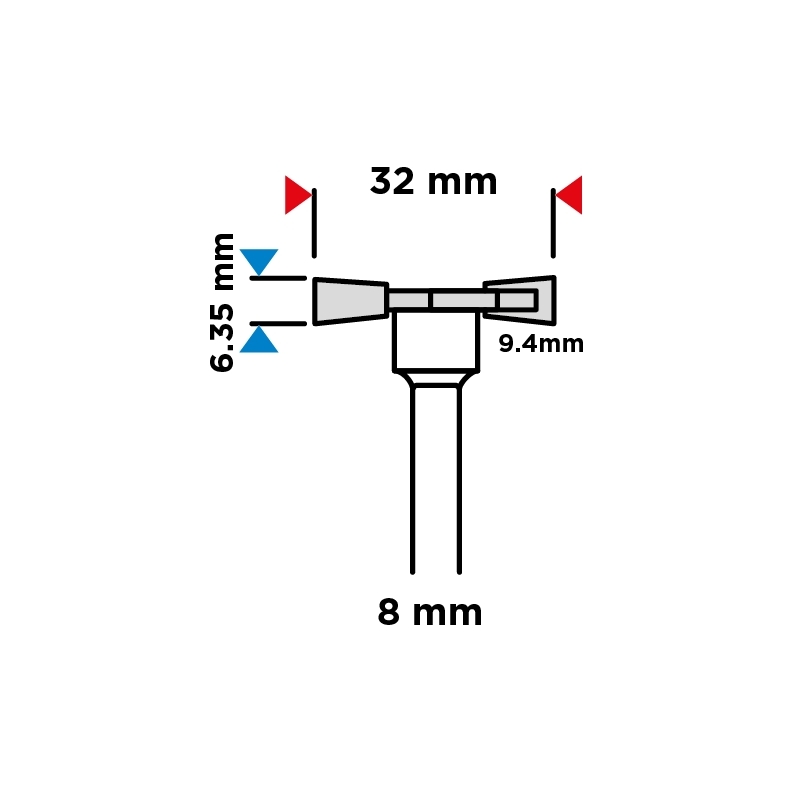 Frez do wpustów, płytka z węglika spiekanego (HM), średnica robocza freza 32 mm, długość robocza freza 6.35 mm, średnica trzpienia 8 mm, do drewna