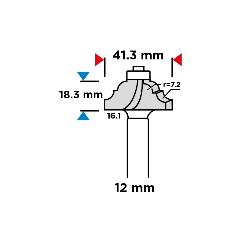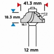 Frez kształtowy z łożyskiem ozdobny, płytka z węglika spiekanego (HM), średnica robocza freza 41.3 mm, długość robocza freza 18.3 mm, średnica trzpienia 12 mm, do drewna