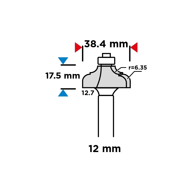 Frez kształtowy z łożyskiem ozdobny, płytka z węglika spiekanego (HM), średnica robocza freza 38.4 mm, długość robocza freza 17.5 mm, średnica trzpienia 12 mm, do drewna