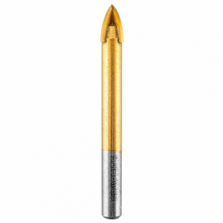Wiertło uniwersalne HM, średnica 10 mm, długość robocza 76 mm, uchwyt cylindryczny, powłoka TiN, 4 ostrza z węglika spiekanego, przeznaczone do wiercenia bezudarowego w miękkich materiałach: drewno, plastik, aluminium, cegła, ceramika, szkło.