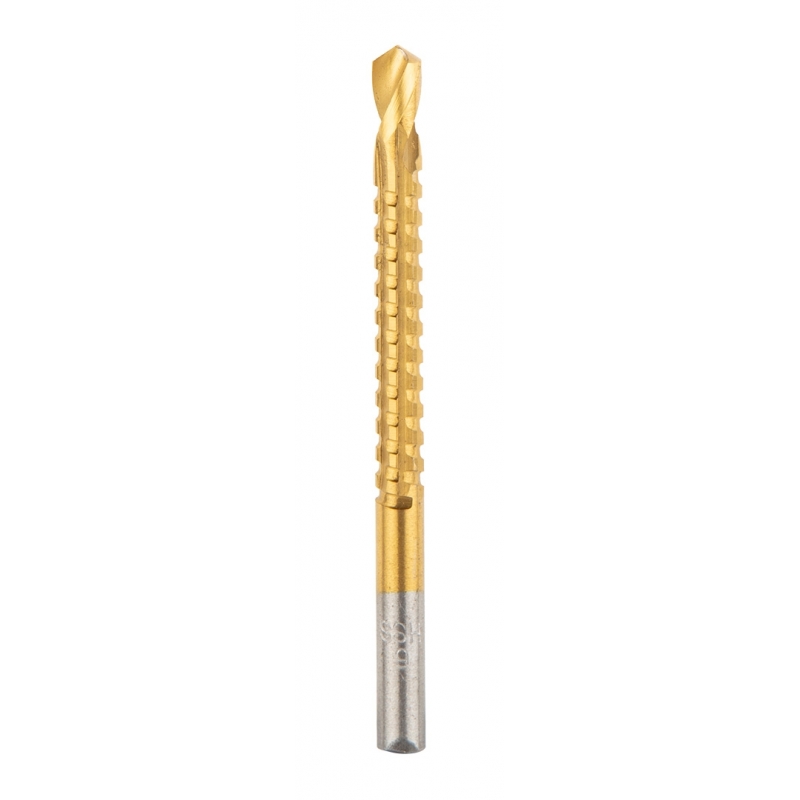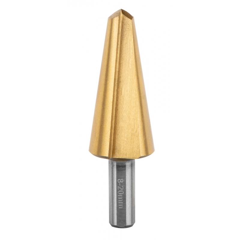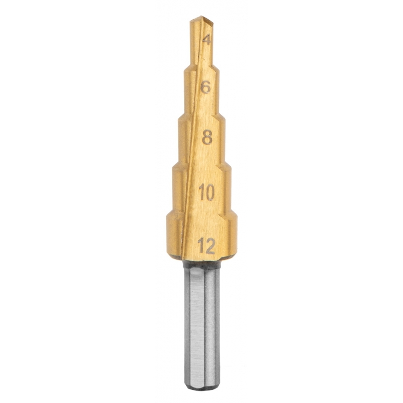 Wiertła z pogłębiaczem, HSS, 2 x wiertła stopniowe 4-12 mm, 3-12 mm, 1 x wiertło bezstopniowe 8-20 mm, 3 x wiertła piły 4, 5, 6 mm, 1 x pogłębiacz 12.4 mm, do pracy z tworzywem sztucznym, metalem, drewnem, zestaw 7 szt. w kasecie z tworzywa sztucznego.