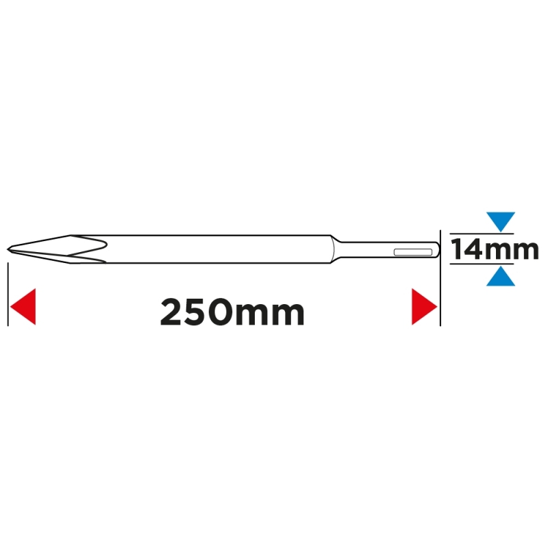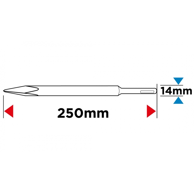 Szpicak SDS Plus rowkowy, średnica trzpienia 14 mm, długość 250 mm