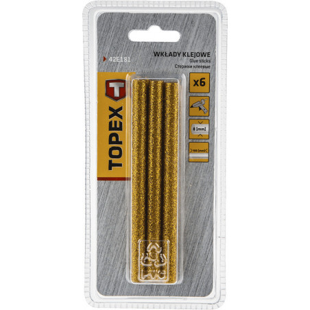 Wkłady klejowe 8 x 100 mm, 6 szt., brokatowe złote
