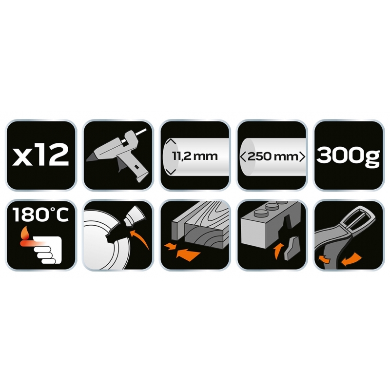 Wkłady klejowe 11 mm, 12 szt., czarne, 250 mm