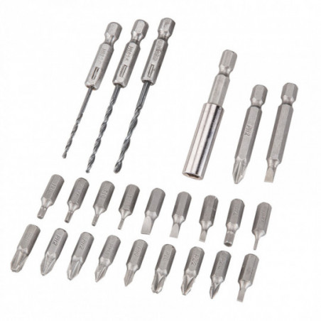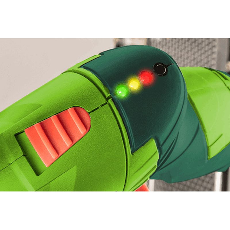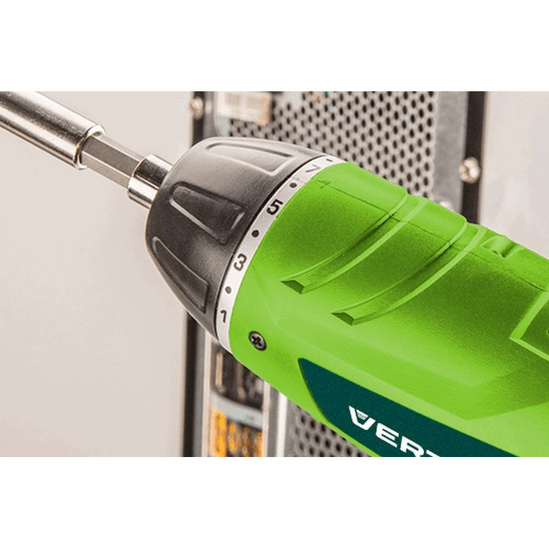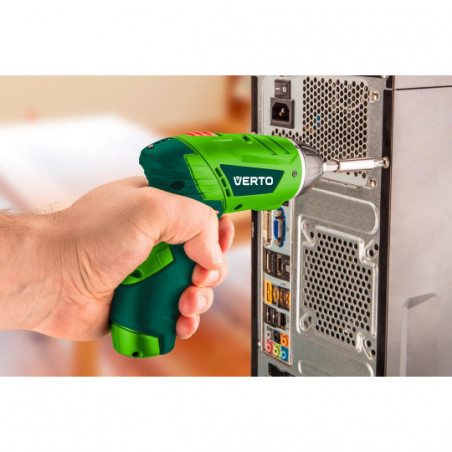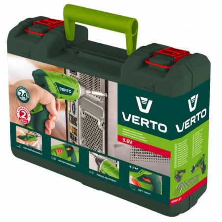 Wkrętak akumulatorowy 3.6V, Li-Ion/1.3Ah, obroty 180 min⁻¹, do mocowania bitów uchwyt sześciokąny 6.35 mm (¼”), przełacznik obrotów prawo/lewo, zakres momentu obrotowego 1-9, ładowanie akumulatora 3-5 godz., (LxH) 230 x 70 mm, masa 0.37 kg akcesoria: 3 wiertła, 20 końcówek do wkręcania, adapter do końcówek, walizka