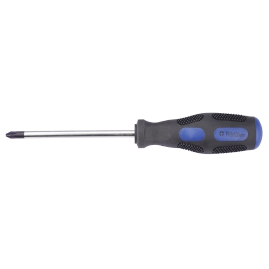 Wkrętak krzyżowy PH2 x 100 mm, magnetyczna końcówka, stal CrV, dwumateriałowy uchwyt