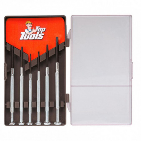 Wkrętaki precyzyjne, zestaw 6 szt., stal węglowa hartowana, końcówki płaskie 1, 1.2, 1.8, 2.4 mm, PH0, PH1