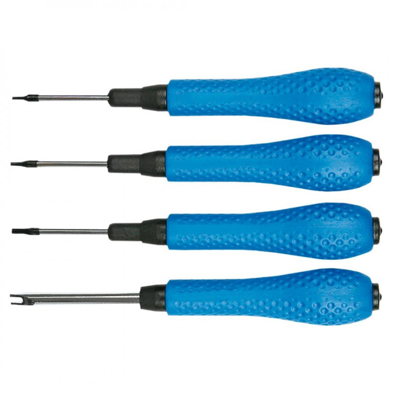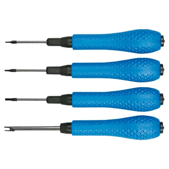 Wkrętaki precyzyjne, zestaw 4 szt., stal CrV, końcówki magnetyczne, 3 końcowki Torx T5, T6, T8, 1 końcowka serwisowa