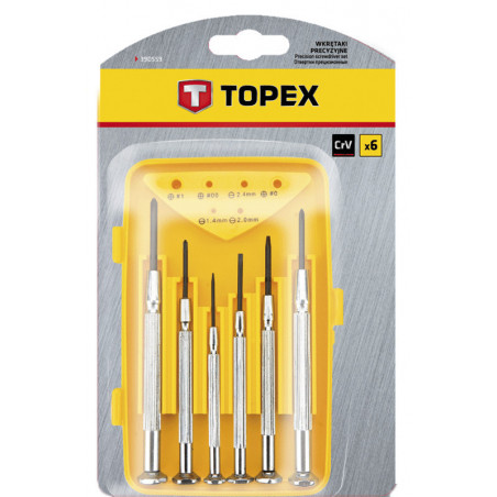 Wkrętaki precyzyjne, zestaw 6 szt., metalowe, hartowana końcówka, rozmiary: płaskie 1.4 mm, 2 mm, 2.4 mm, krzyżowe PH00, PH0, PH1, stal CrV