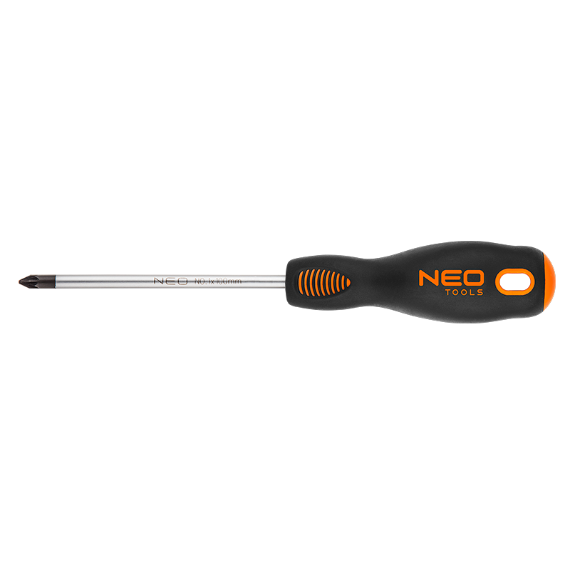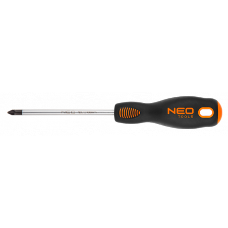 Wkrętak krzyżowy PZ1 x 100 mm, S2, twardość końcówki roboczej 56 HRc, magnetyczna końcówka, trójgraniasty kształt uchwytu, wyprofilowane oparcie dla kciuka, uchwyt pokryty tworzywem TPR odpornym na działanie chemikaliów, olejów mineralnych, smarów, TÜV