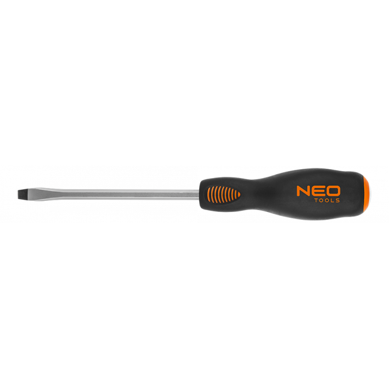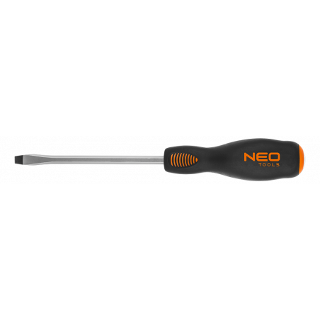Wkrętak płaski do pobijania 6.5 x 125 mm, S2, metalowe zakończenie uchwytu przystosowane do pobijania, twardość końcówki roboczej 56 HRc, magnetyczna końcówka, trójgraniasty kształt uchwytu, wyprofilowane oparcie dla kciuka, uchwyt pokryty tworzywem TPR odpornym na działanie chemikaliów, olejów mineralnych, smarów, TÜV