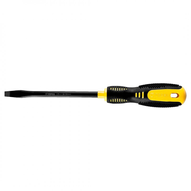 Wkrętak płaski 8.0 x 150 mm, hartowana końcówka, magnetyczna końcówka, stal CrV, dwumateriałowy uchwyt