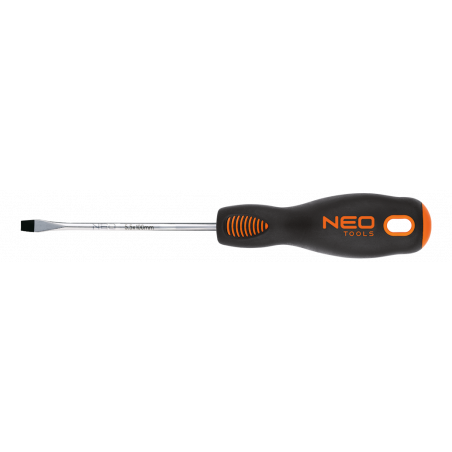 Wkrętak płaski, równoległy 5.5 x 250 mm, SVCM, twardość końcówki roboczej 56 HRc, magnetyczna końcówka, trójgraniasty kształt uchwytu, wyprofilowane oparcie dla kciuka, uchwyt pokryty tworzywem TPR odpornym na działanie chemikaliów, olejów mineralnych, smarów, TÜV