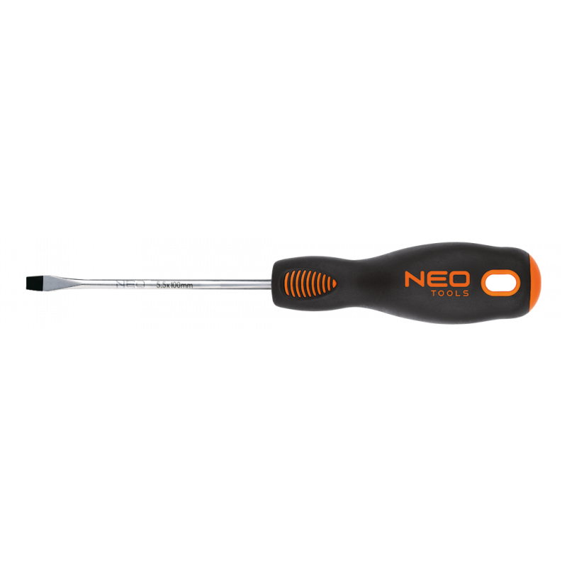 Wkrętak płaski, równoległy 5.5 x 300 mm, SVCM, twardość końcówki roboczej 56 HRc, magnetyczna końcówka, trójgraniasty kształt uchwytu, wyprofilowane oparcie dla kciuka, uchwyt pokryty tworzywem TPR odpornym na działanie chemikaliów, olejów mineralnych, smarów, TÜV