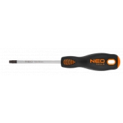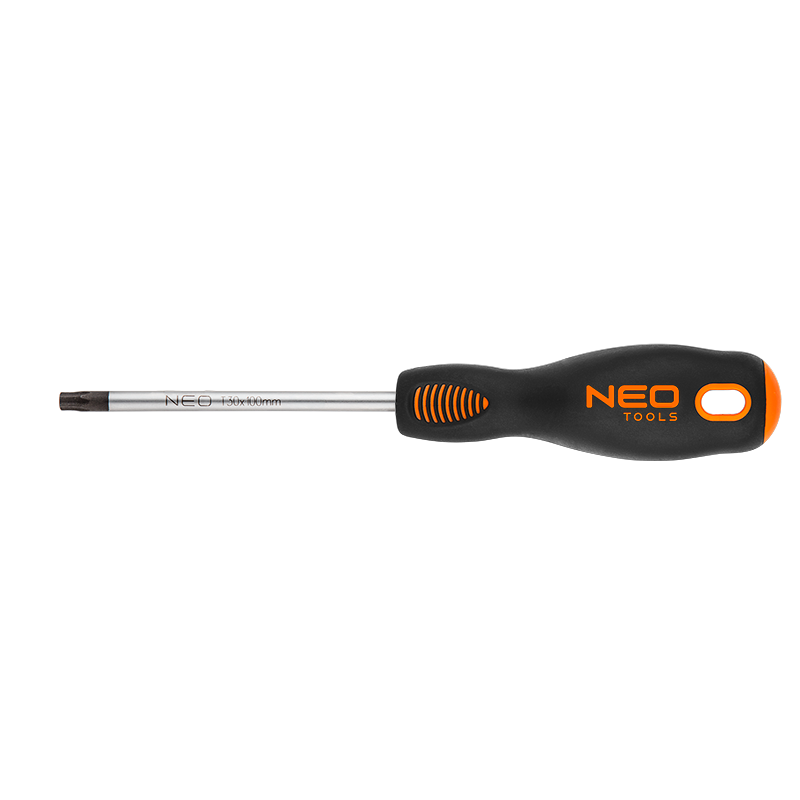 Wkrętak Torx T30 x 100 mm, S2, twardość końcówki roboczej 56 HRc, magnetyczna końcówka, trójgraniasty kształt uchwytu, wyprofilowane oparcie dla kciuka, uchwyt pokryty tworzywem TPR odpornym na działanie chemikaliów, olejów mineralnych, smarów, TÜV