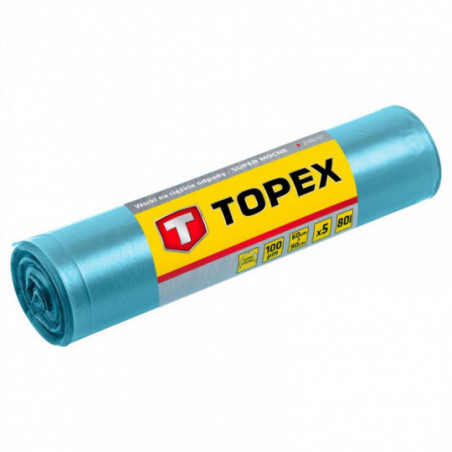 Worki na ciężkie odpady 80 L, błękitne 5 szt., super mocne, wymiary 60x90cm - grubość 100 mic, folia LDPE