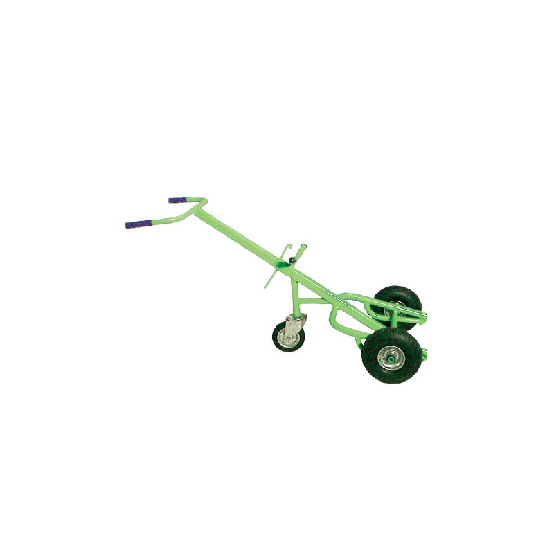 Stabilny wózek do beczek z mocnych rur stalowych. Malowane proszkowo RAL 5015. Koła opony z powietrzem, Ø 260 mm, nośność 400 kg, 660 x 1600 mm.