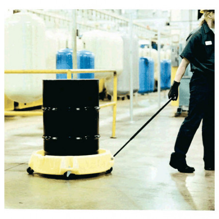 Dzięki stojakom z kółkami można łatwo i bezpiecznie transportować beczki do 200 litrów. Wymiary: Ø 880 x 230 mm, waga 13 kg, materiał PE. Rączka do SPILL SCOOTER (kupowana osobno) o wymiarach 930 x 25 mm, waga 2 kg, materiał stal.