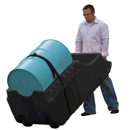 Wózek do beczek wykonany w 100% z polietylenu pozyskanego z recyklingu. Spełnia wszystkie obowiązujące normy dotyczące zbierania rozlanych cieczy. Konstrukcja mocna, z wbudowanymi okrągłymi rączkami pozwala na wygodne i bezpieczne przenoszenie beczek w dowolne miejsce. Dodatkowym atutem naszego produktu jest duża pojemność zbiornika ociekowego. Wewnątrz wózka istnieje możliwość dołączenia pojemnika aby pobrać płyn bez konieczności zdejmowania beczki. Otwarta konstrukcja pozwala łatwo i szybko dostać się do beczki w przypadku czyszczenia. Do stosowania na zewnątrz. 813 x 1829 x 660 mm.