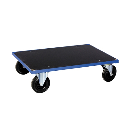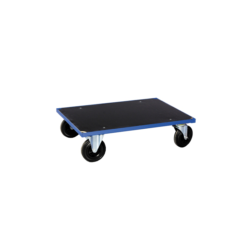 Prosty wózek transportowy wyposażony w dwa kółka stałe i dwa skręcone: 200 x 50 mm. Wymiary: 1000 x 700 x 260 mm; obciążenie: 500 kg.