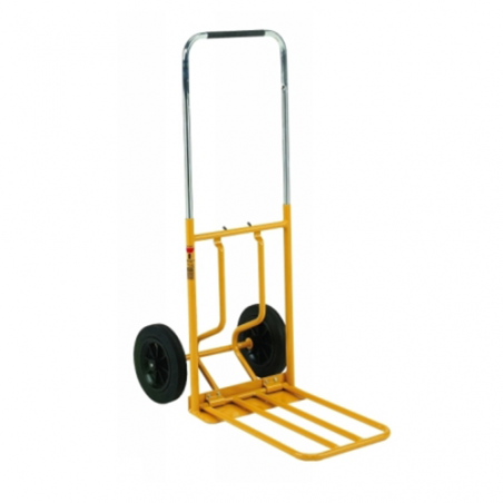 Mały, lekki wózek transportowy do przewożenia ciężkich pojemników, beczek, mebli, skrzyń, sprzętu AGD itp. Solidne gumowe pełne koła (250 mm); nośność wózka to: 150 kg; wymiary wózka: 800 x 430 x 1150 mm; wymiary platformy: 415 x 135 mm; malowany proszkowo.