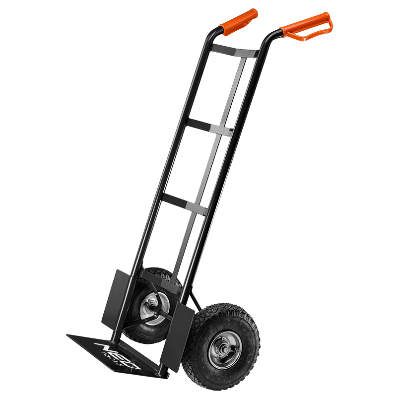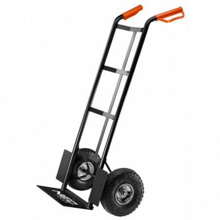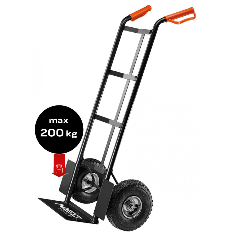 Wózek transportowy, młynarka, udźwig 200kg, platforma ładunkowa o wymiarach 350 x 180 mm, całkowita wysokość 1175 mm, 10” pneumatyczne koła z felgami metalowymi, uchwyty z tworzywa sztucznego z ochroną na palce, ciężar własny 9,8 kg