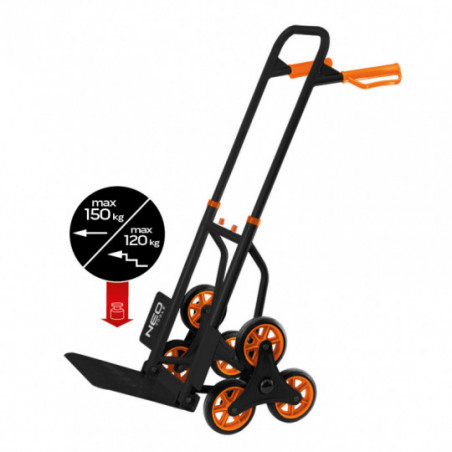 Wózek transportowy, schodowy, składany, udźwig 150kg na płaskiej powierzchni, 120 kg na schodach, platforma ładunkowa o wymiarach 310 x 290 mm, uchwyty z tworzywa sztucznego z ochroną palcy ciężar własny 11,2 kg