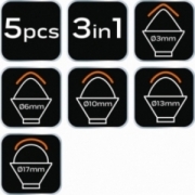 Zestaw do silikonu 3 w 1 skrobak, zdzierak, gładzik, 5 rozmiarów gładzika silikonu 3mm, 6mm,10mm, 13mm, 17mm, stalowe ostrze skrobaka, długość 19cm (rozsunięte 19,5cm), szerokość 4.5cm, wysokość 4cm