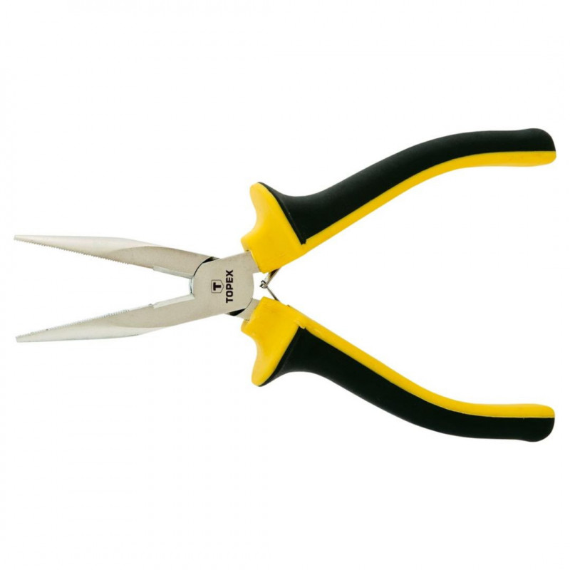 Szczypce wydłużone proste 160 mm, sprężynka rozpierająca, dwumateriałowy uchwyt, stal CS