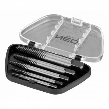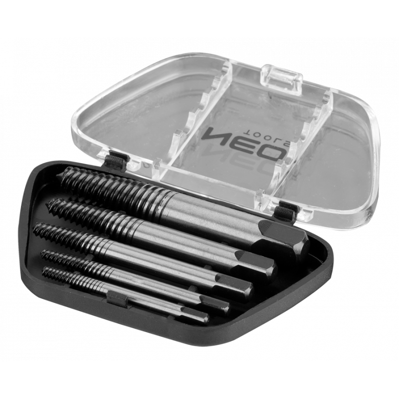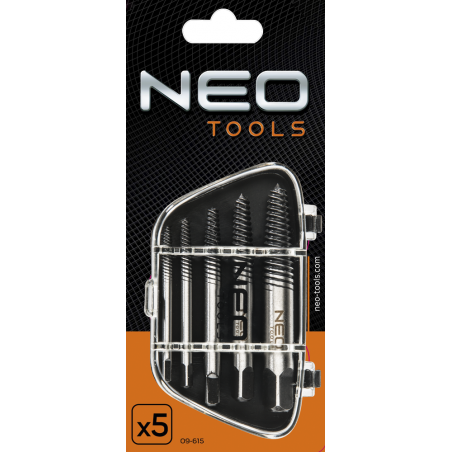 Wykrętaki do zerwanych śrub, zestaw 5 szt., rozmiary: M3-6, M6-8, M8-11, M11-14, M14-18, stal CrMo, certyfikat TÜV M+T