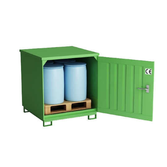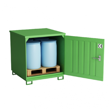 Zabudowana wanna wychwytowa. Stabilna metalowa spawana konstrukcja ocynkowana ogniowo. Stacja jest dostarczana całkowicie zmontowana i gotowa do użytku. Rozwiązanie konstrukcyjne umożliwia przewożenie stacji przy użyciu wózka widłowego. Zastosowana wanna ociekowa, spełnia tu rolę podłogi stanowiska roboczego, wyposażona jest w zdejmowalną kratownicę. Szerokie otwory wejściowe ułatwiają ustawianie beczek na paletach. Po otwarciu wanny istnieje możliwość montowania lejków, pomp i innych akcesoriów do beczek.