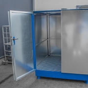 Stacja dostosowana do przechowywania substancji chemicznych, otwierana z przodu. Spawana, metalowa konstrukcja, niezwykle wytrzymała. Ściany, dach oraz drzwi wykonane z ocynkowanej blachy – całość nitowana.