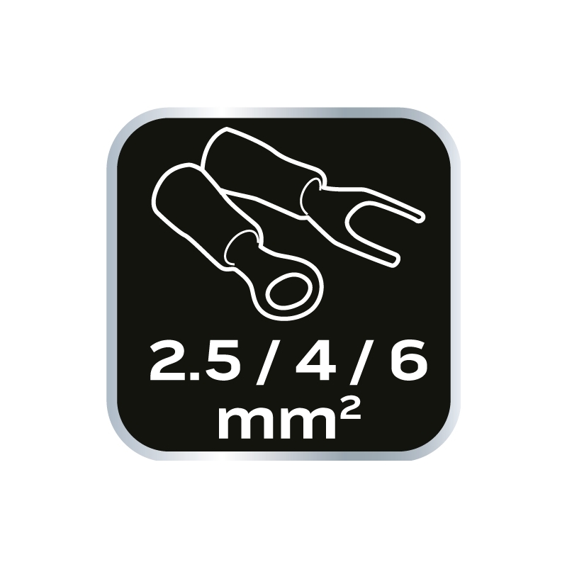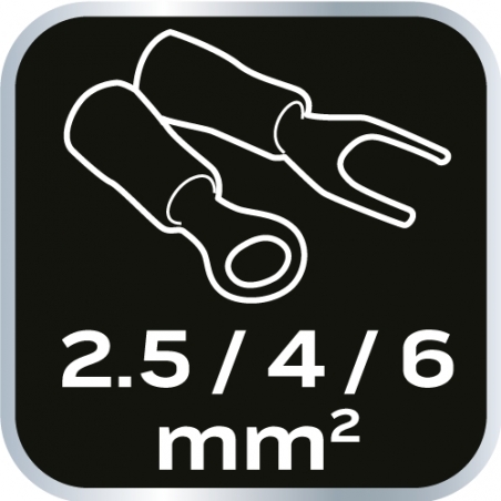 Szczypce do zaciskania konektorów MC4 o przekrojach 2.5, 4.5 i 6.0 mm2, mechanizm zapadkowy, uchwyt szpilek regulowany, materiał uchwytów PVC, klucz torx