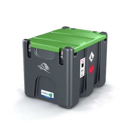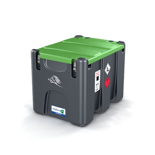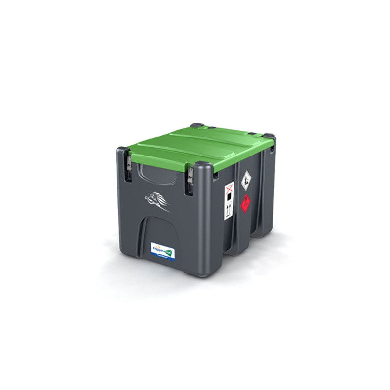 Mobilny zbiornik do dystrybucji oleju napędowego - najczęściej wykorzystywany przy samochodach ciężarowych, ciągnikach, kombajnach itp. Zbiornik posiada 5-letnią gwarancję na jego szczelność oraz 1 rok na wyposażenie. Dno pojemnika specjalnie profilowane, by usprawnić załadunek na samochód np. za pomocą wózka widłowego. Osoby niepowołane nie mają dostępu do urządzenia, gdyż zbiornik zamykany jest na klucz. Zbiornik do dystrybucji spełnia wszystkie europejskie wymogi ADR.
