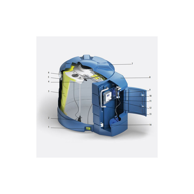 Dwupłaszczowa konstrukcja zbiornika, system wykrywania przecieków, wskaźnik napełniania oraz zabezpieczenia przed przepełnieniem zapobiega wydostanie się magazynowanej substancji na zewnątrz. Obudowa dystrybutora jest zamykana na klucz. Długoletnią eksploatację zbiornika zapewnia wykonanie pojemnika z najwyższej jakości polietylenu. Zbiornik można łatwo transportować przy pomocy wózka widłowego. Gwarancja na szczelność urządzenia to 10 lat, a na wyposażenie 2 lata.