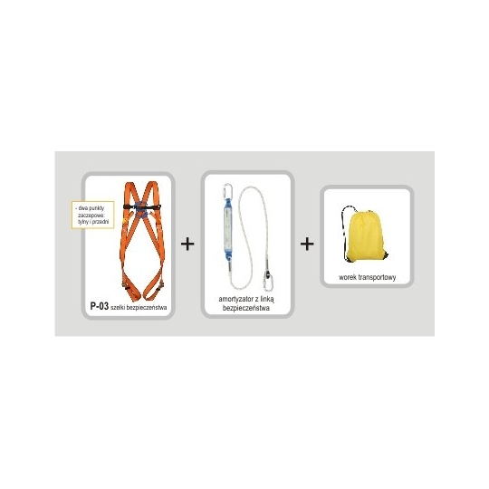 - szelki bezpieczenstwa P-03 z przednim i tylnym punktem zaczepowym w rozmiarze M-XL lub XXL