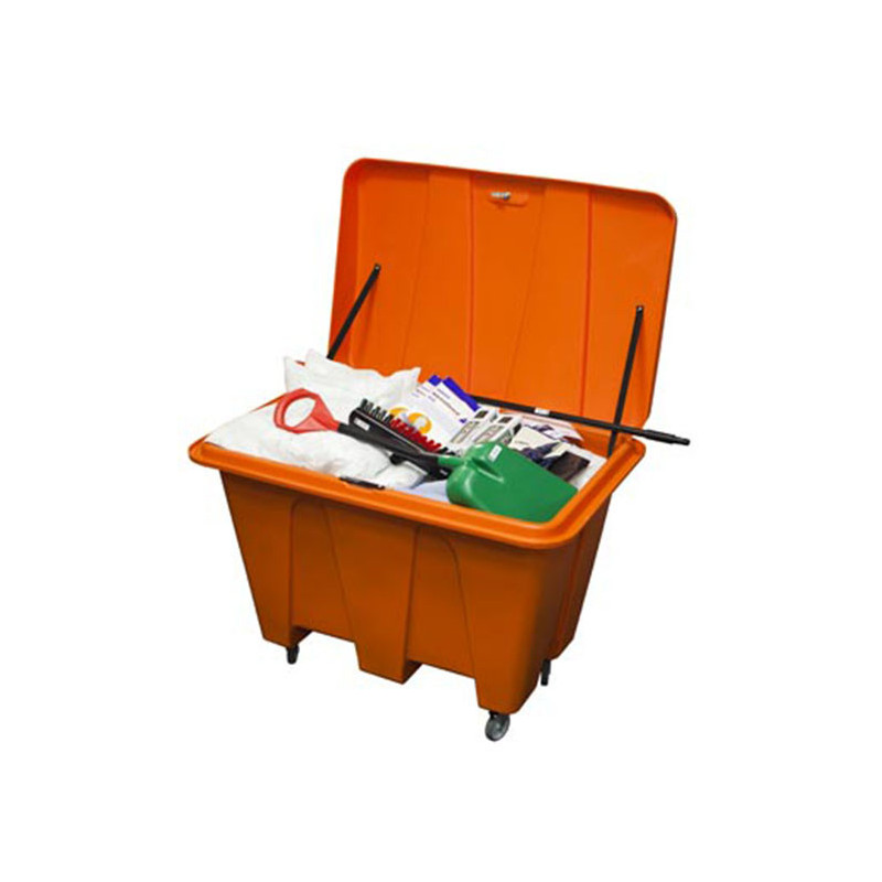 Pojemnik pierwszej pomocy przy wyciekach to ważna część strategii zapobiegania wyciekom w przedsiębiorstwach. Zestaw powinien być umieszczony w punkcie ogólnodostępnym. Zawartość pojemnika może być dopasowana dla potrzeb klienta.