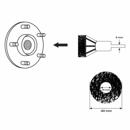 Ściernice do czyszczenia piast, 6 wymiennych ściernic ø 40 x 14 mm, trzpień mocujący ø 6 x 29 mm