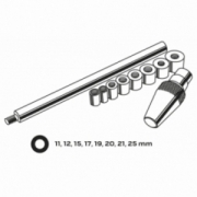 Zestaw do centrowania tarcz sprzęgła: wałek prowadzący, wałek centrujący, 7 tulei redukcyjnych ø 11, 12, 15, 17, 19, 20, 21, 25 mm.