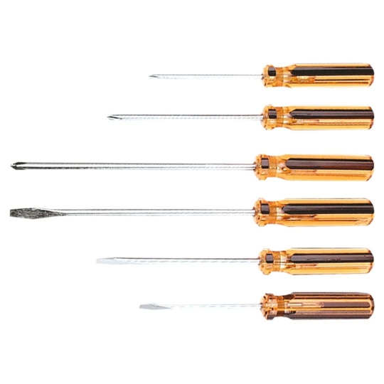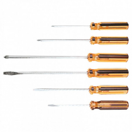 Wkrętaki, zestaw 6 szt., stal węglowa hartowana, rozmiary: płaskie 4 x 75mm, 5 x 100 mm, 5 x 150 mm, PH0 x 75 mm, PH1 x 100 mm, PH1 x 150 mm
