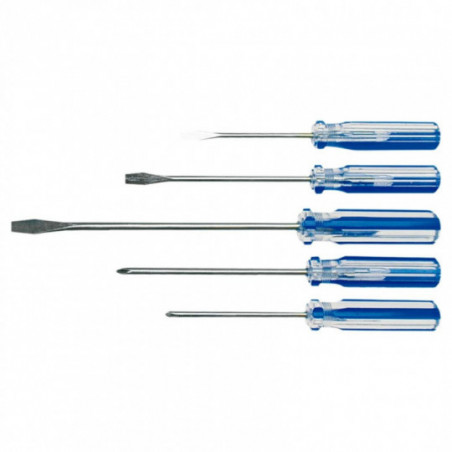 Wkrętaki, zestaw 5 szt., stal węglowa hartowana, rozmiary: płaskie 4 x 75 mm, 5 x 100 mm, 5 x 150 mm, PH1 x 100 mm, PH2 x 150 mm