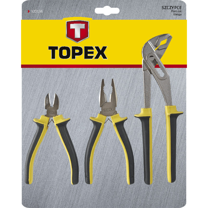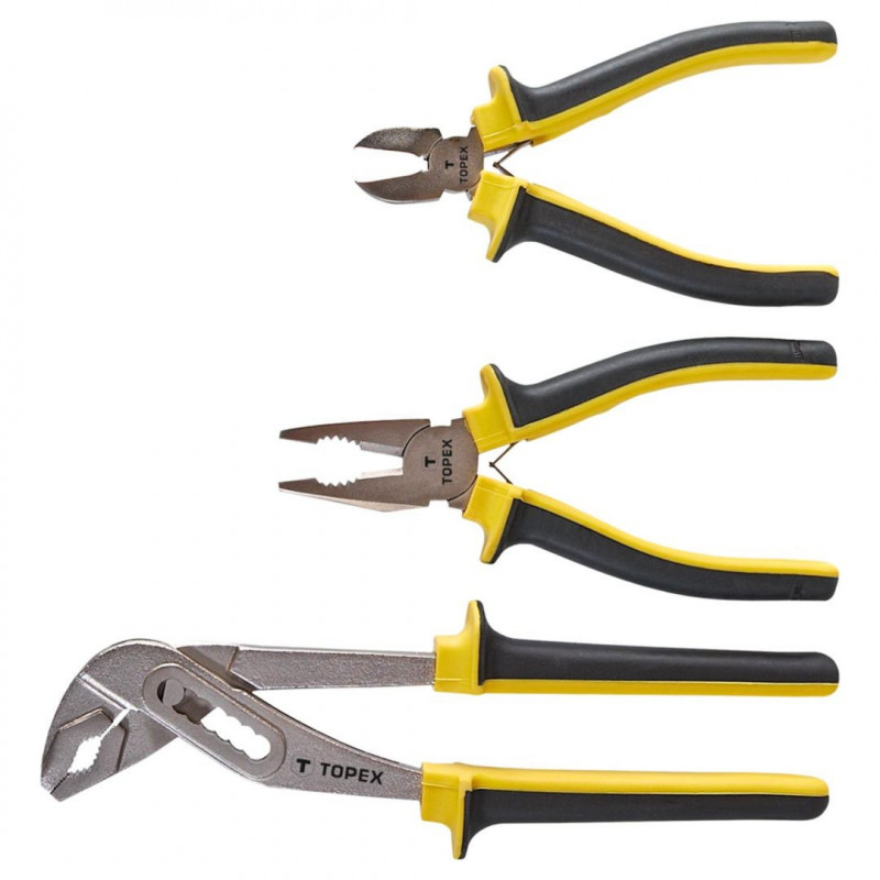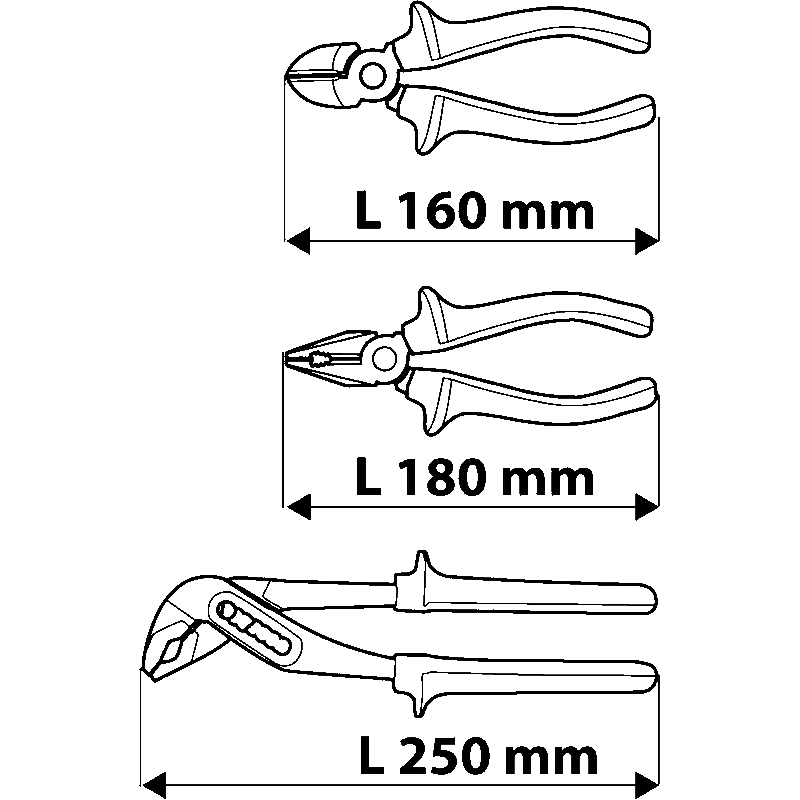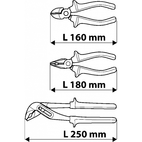 Szczypce, zestaw 3 szt., szczypce uniwersalne 180 mm, szczypce boczne 160 mm, szczypce do rur 250 mm