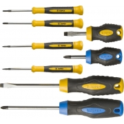 Wkrętaki, zestaw 8 szt., dwumateriałowy uchwyt, płaskie: 2 x 50 mm, 2,4 x 50 mm, 6 x 38 mm, 6,5 x 100 mm, PH0 x 50 mm, PH1 x 50 mm, PH2 x 100 mm, PH2 x 38 mm, magnetyczne końcówki