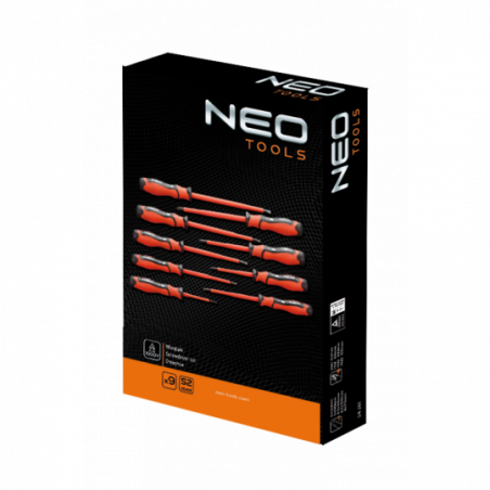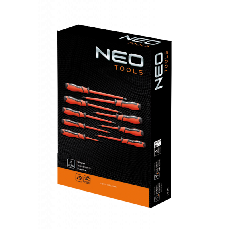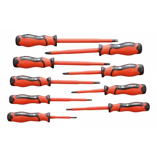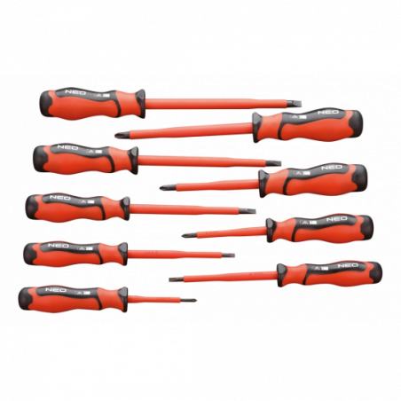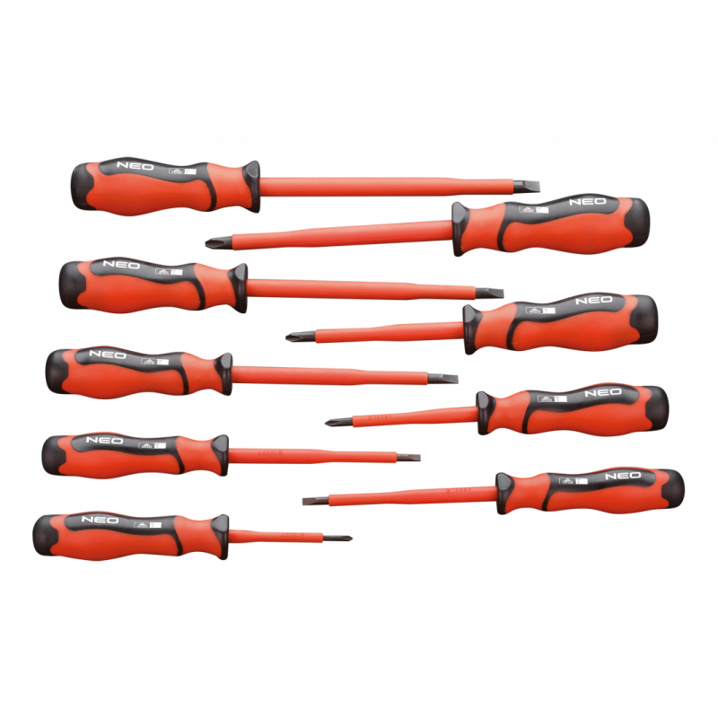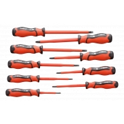 Zestaw wkrętaków 1000V, 9 szt., rękojeść dwumateriałowa, wkrętaki stal S2, certyfikat TÜV 3*100 mm, 4*100 mm, 5.5*125 mm, 6.5*150 mm, 8*175 mm, PH0*60mm, PH1*80 mm,PH2*100 mm, PH3*150 mm