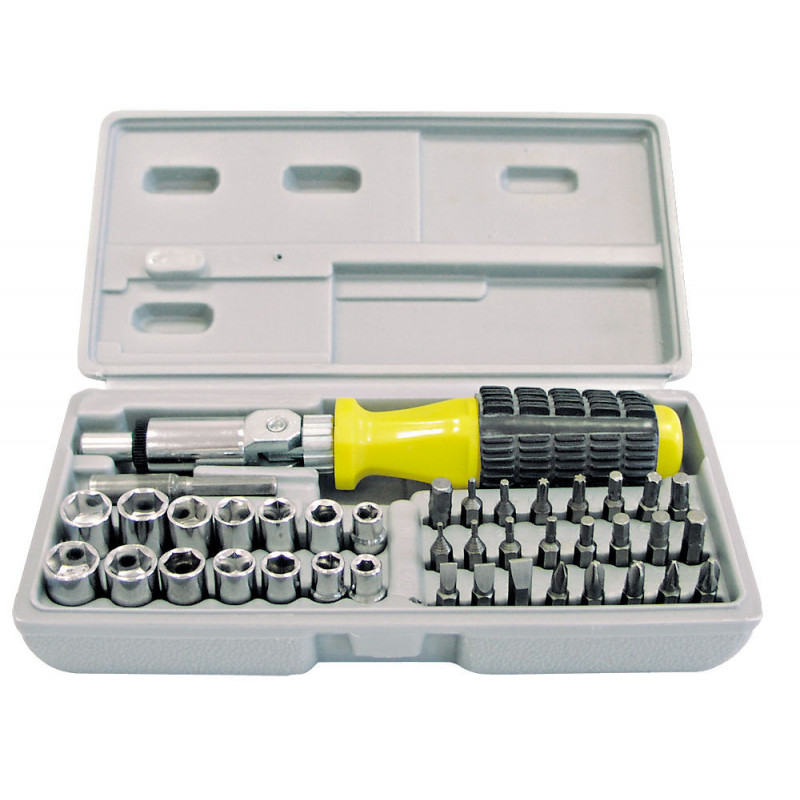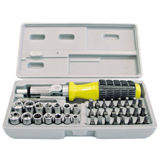 WKRĘTAK Z GRZECHOTKĄ, KPL. 40 CZ., BITY, NASADKI, PRZEGUB - 10013