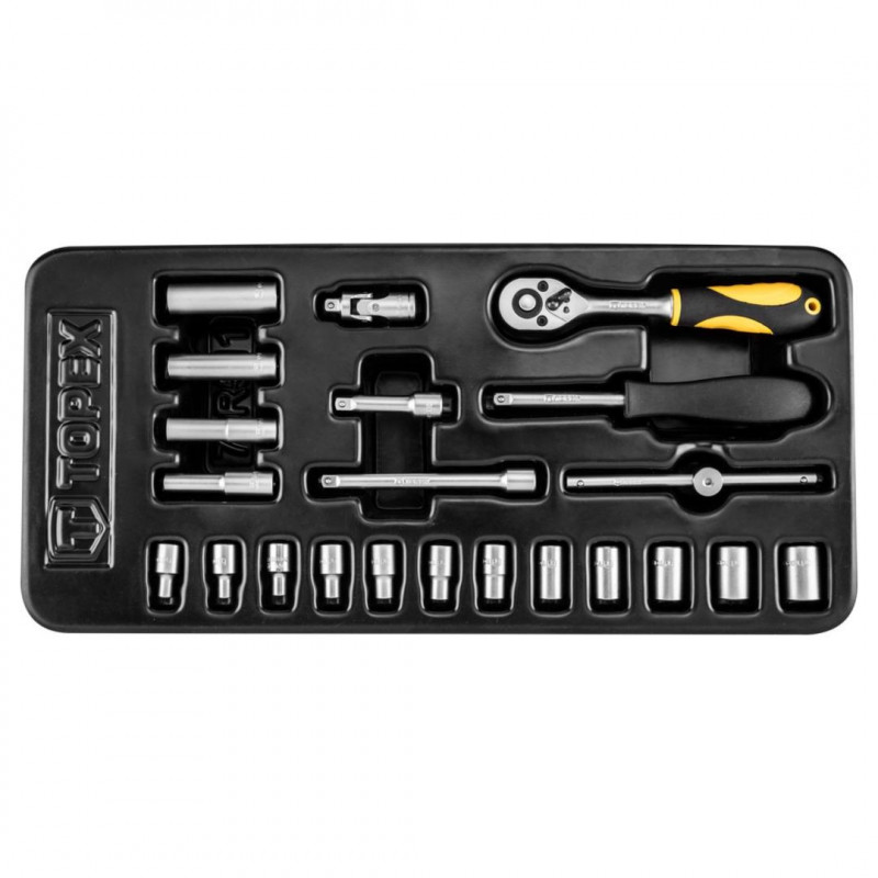 Klucze nasadowe 1/4", zestaw 21 szt. (nr ref 79R511) stal chromow wanadowa, grzechotka 1/4 150mm, przedłużka 50mm, 100mm, uchwyt do nasadek 1/4, przegub uniwersalny 1/4, pokrętło z kwadratem 1/4, nasadki długie 1/4 rozmia 8, 10, 12, 13mm, nasadki krótkie 1/4 rozmiary 3.5, 4, 4.5, 5, 5.5, 6, 7, 8, 9, 10, 11, 13