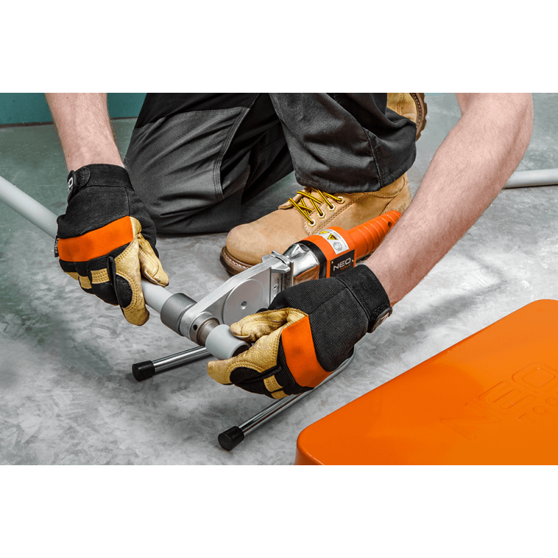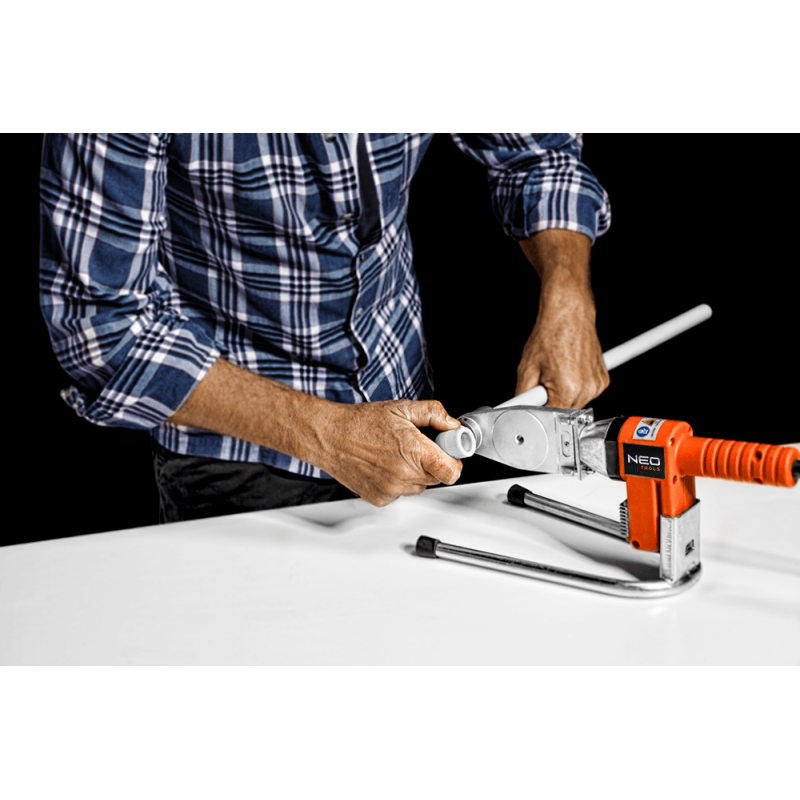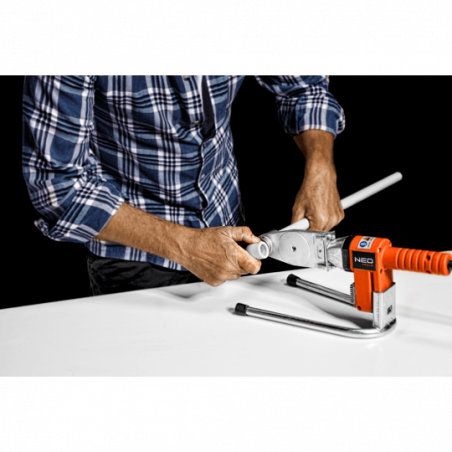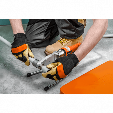 Zgrzewarka do rur z tworzyw sztucznych 900W, do mufek i rur: PE, PP, PB o O do 63 mm, zasilanie 230V, 50Hz, masa 6.6 kg, temperatura głowicy 260°C, stojak, walizka, CE