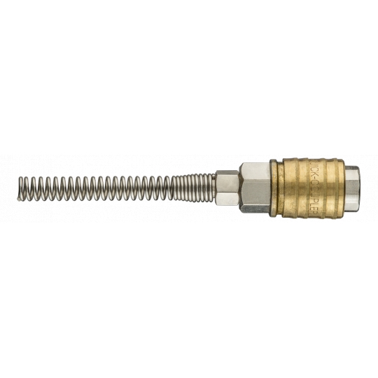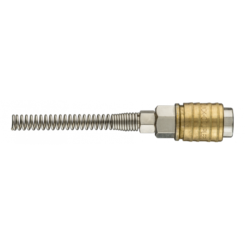 Szybkozłączka do kompresora z wyjściem na wąż 4 x 6 mm, stal nierdzewna, mosiądz, sprężynka, maksymalne ciśnienie 16 barów, CE