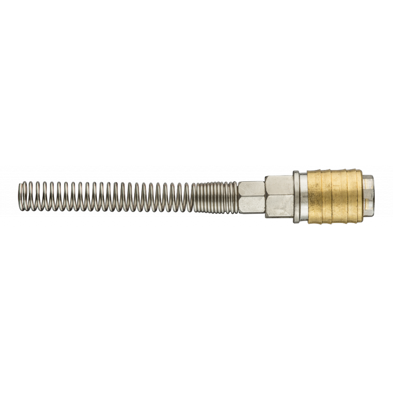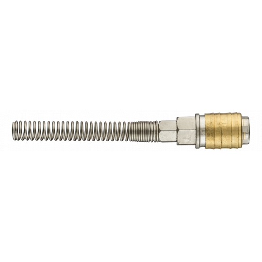 Szybkozłączka do kompresora z wyjściem na wąż 6 x 8 mm, stal nierdzewna, mosiądz, sprężynka, maksymalne ciśnienie 16 barów, CE