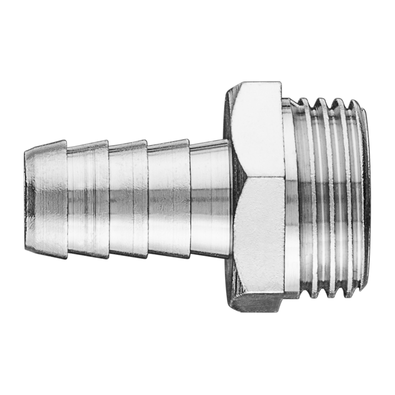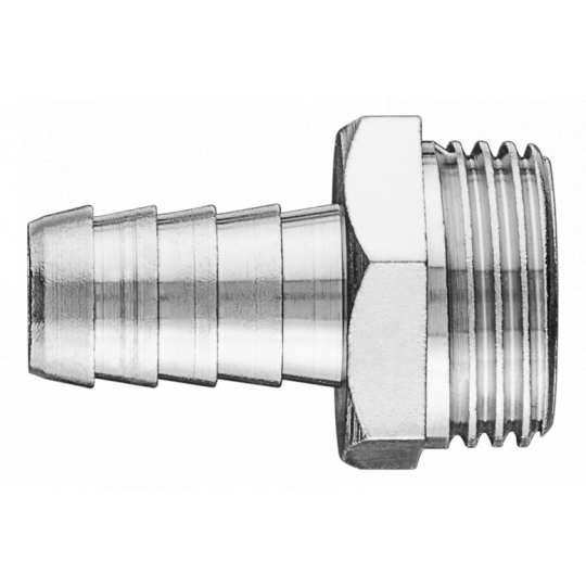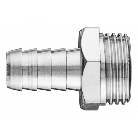 Złącze do węża 12 mm z gwintem zewnętrznym 1/2", mosiężne, niklowane, maksymalne ciśnienie 16 barów, CE